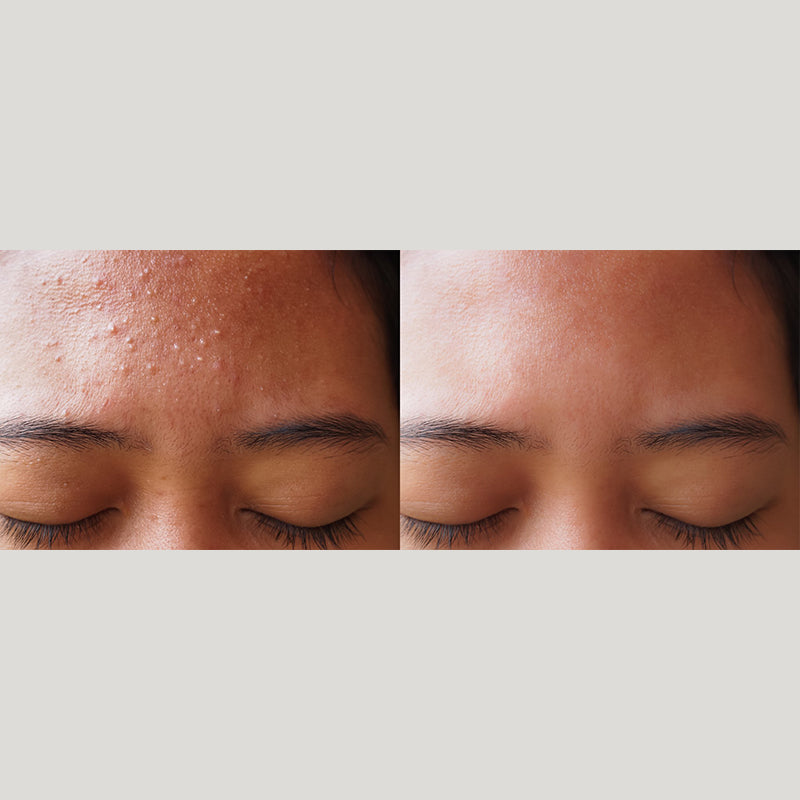 The acne has cleared up. Skin looks and feels healthy, hydrated and smooth.